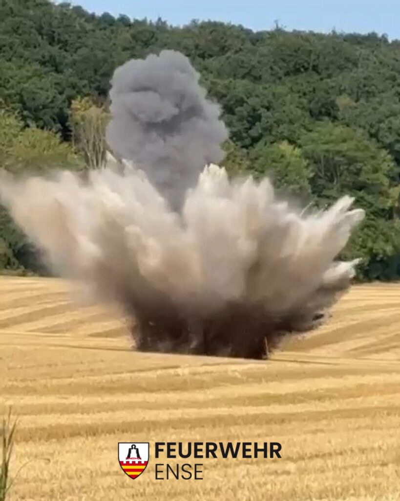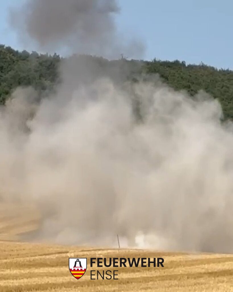 Am 15.08.25 wurde um 16:07 Uhr eine Löschgruppe des Löschzuges Bremen (Feuerwehr Ense) zu einem Einsatz am Ortsrand von Waltringen alarmiert. Ein Hobby-Sondengänger hatte dort auf einem Feld mit einem Metalldetektor einen verdächtigen Gegenstand entdeckt und die Behörden informiert.